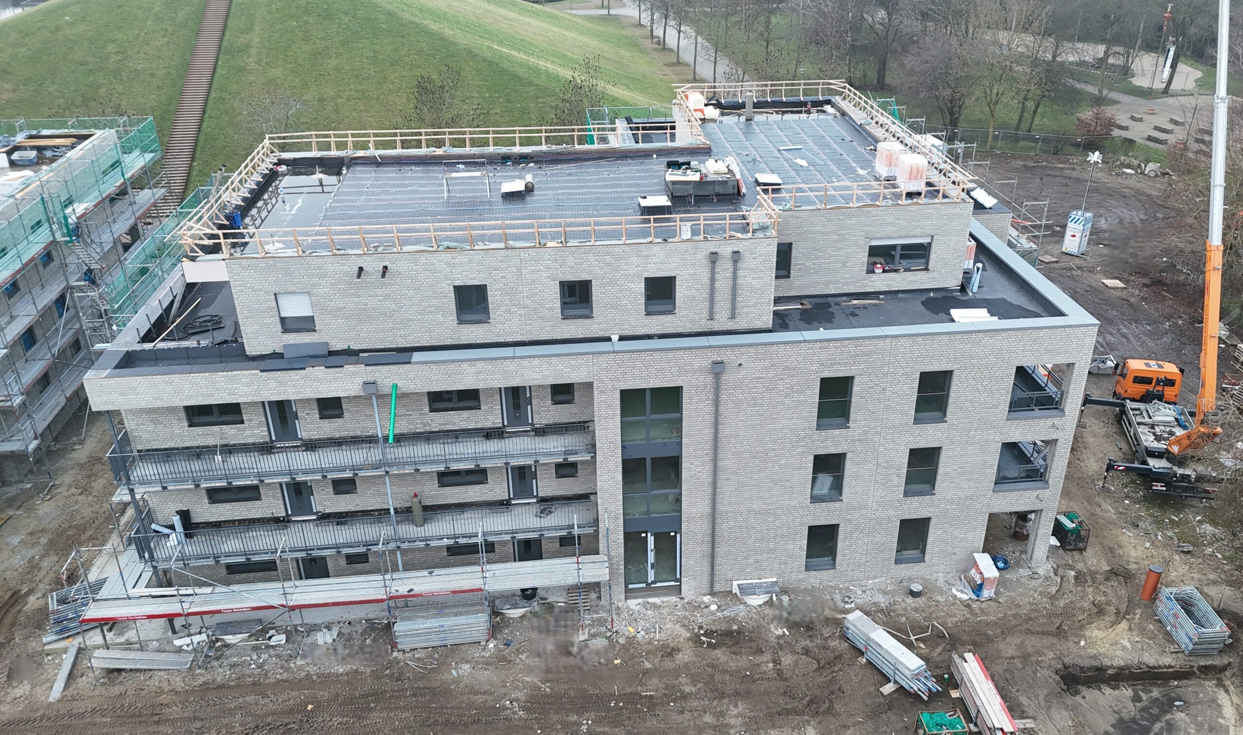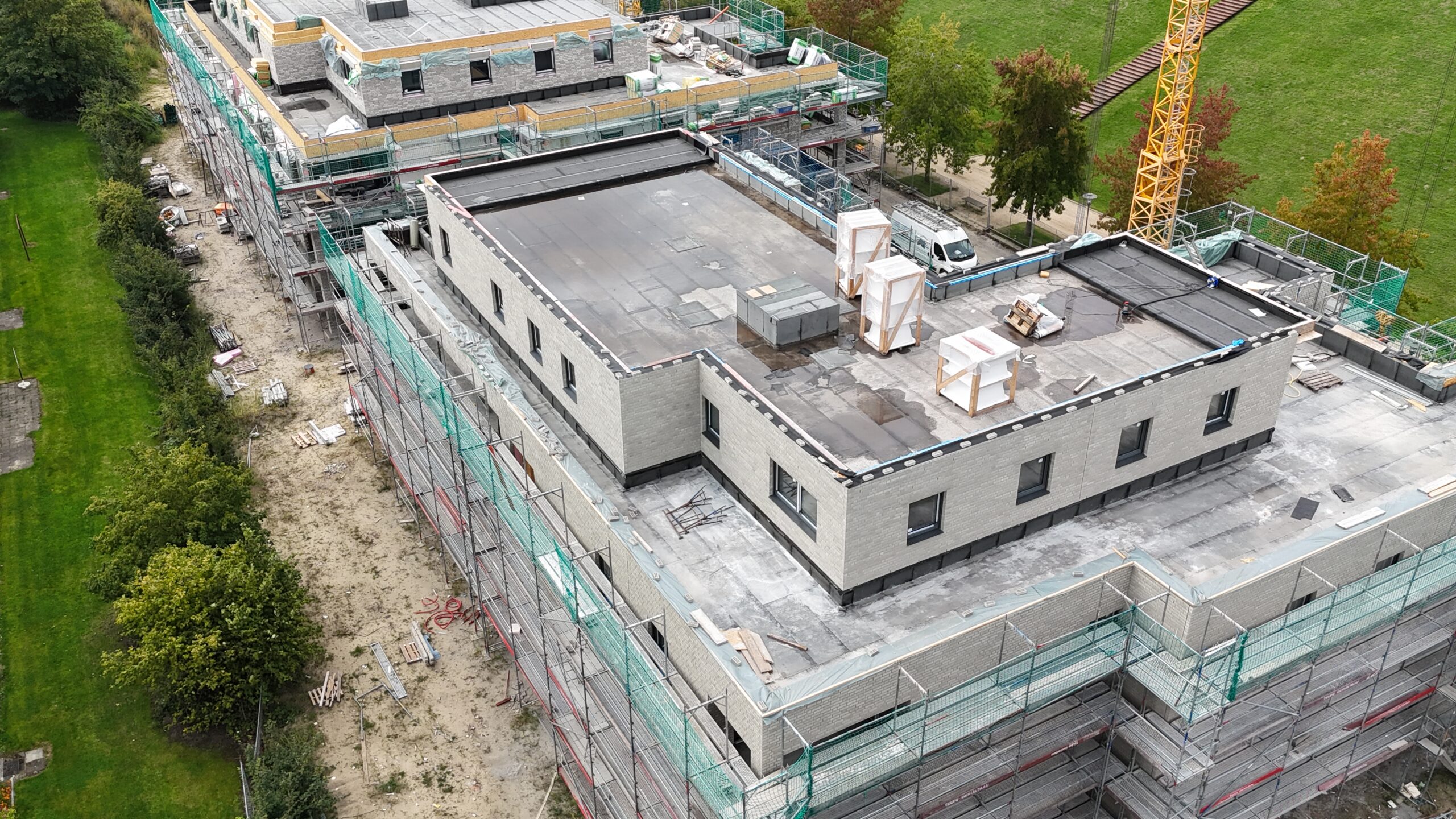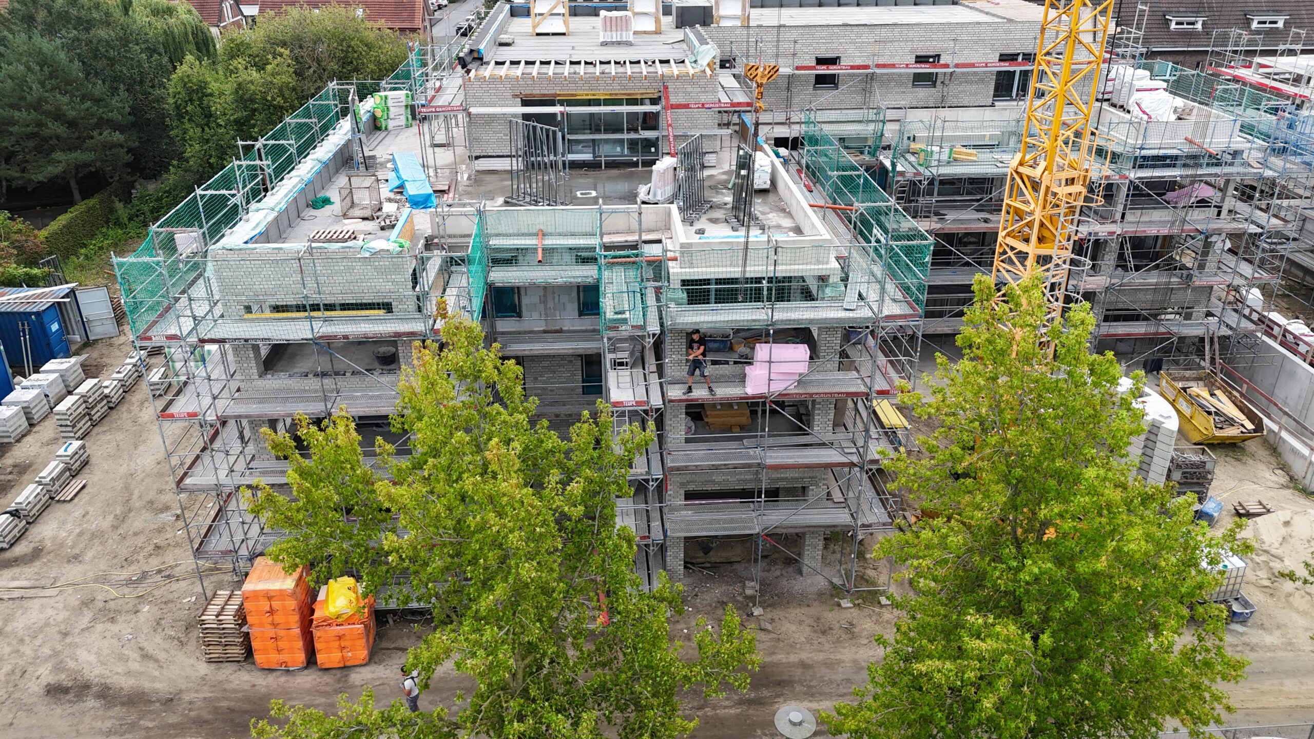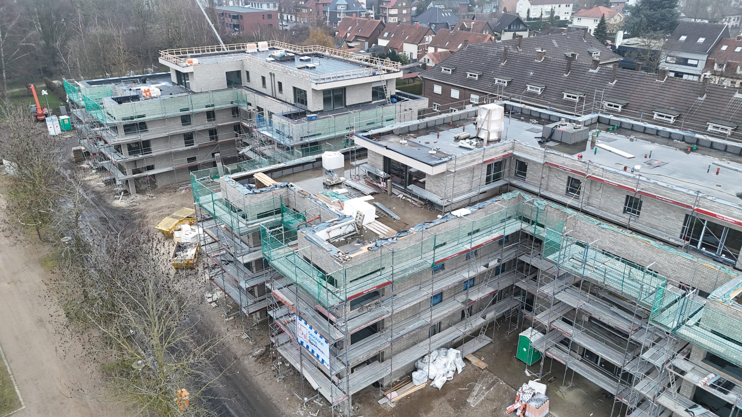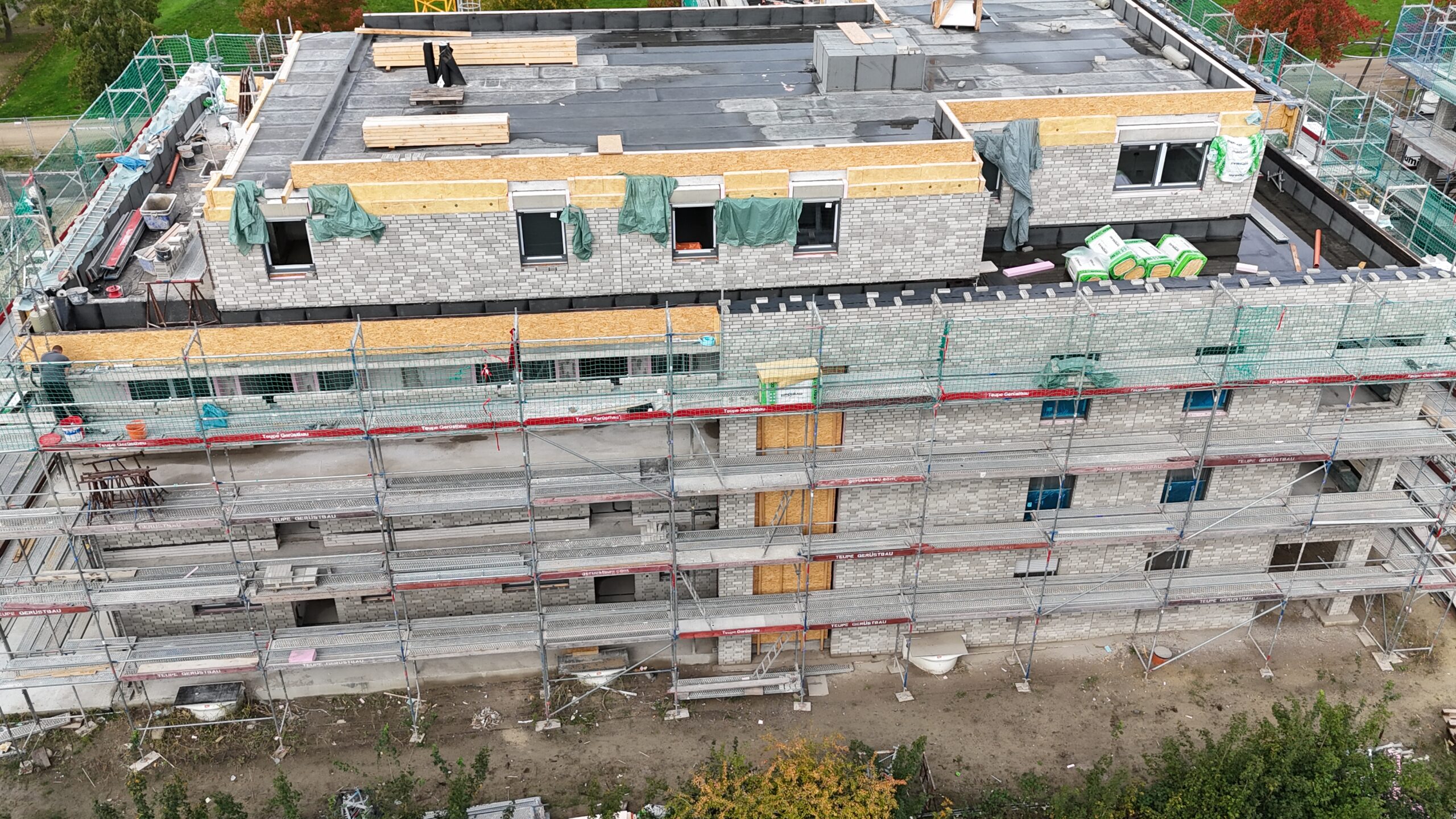 Die Erstellung der 34 Wohneinheiten erfolgt in massiver Bauweise incl. Aufzugsanlage und Tiefgarage.