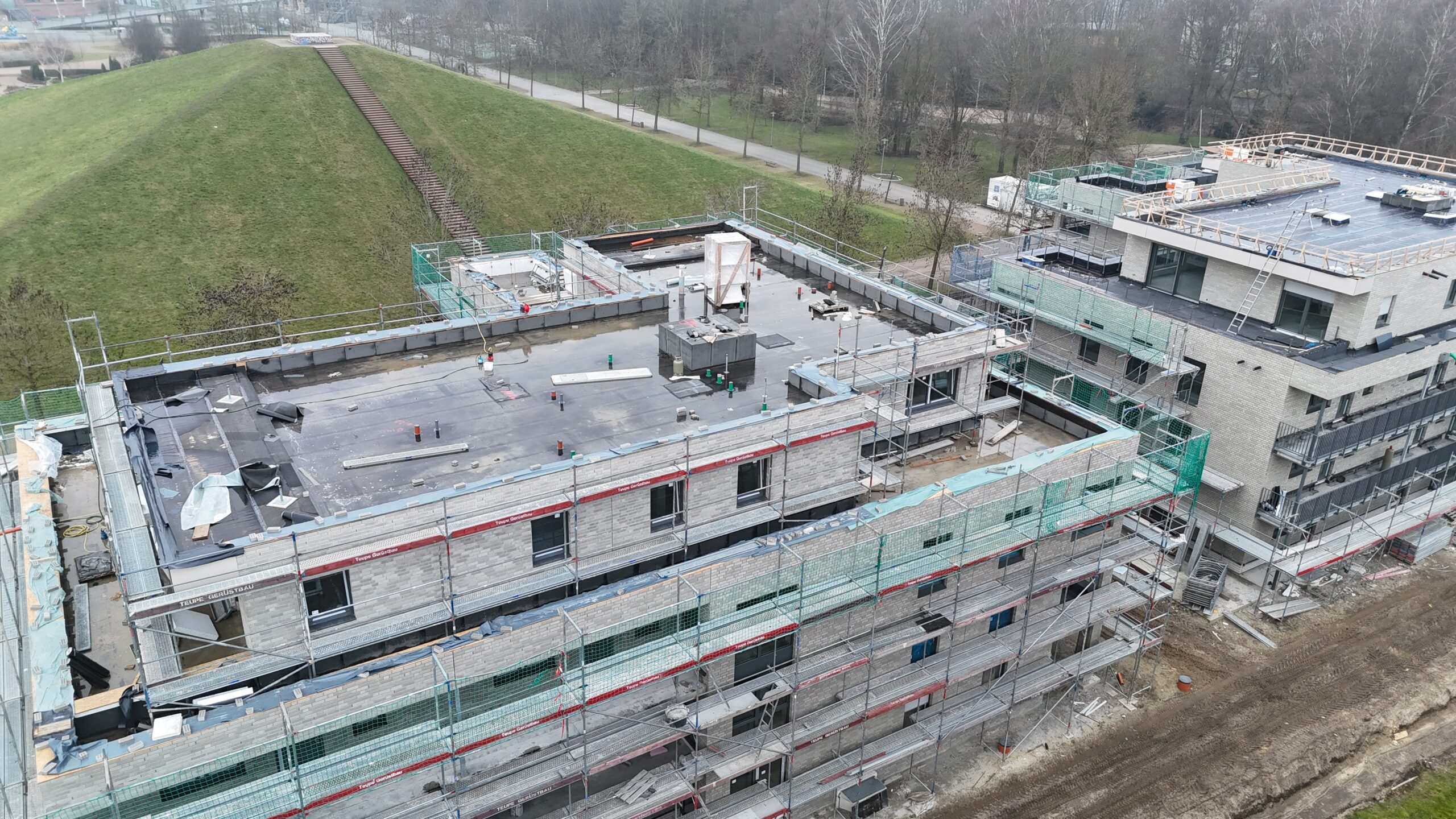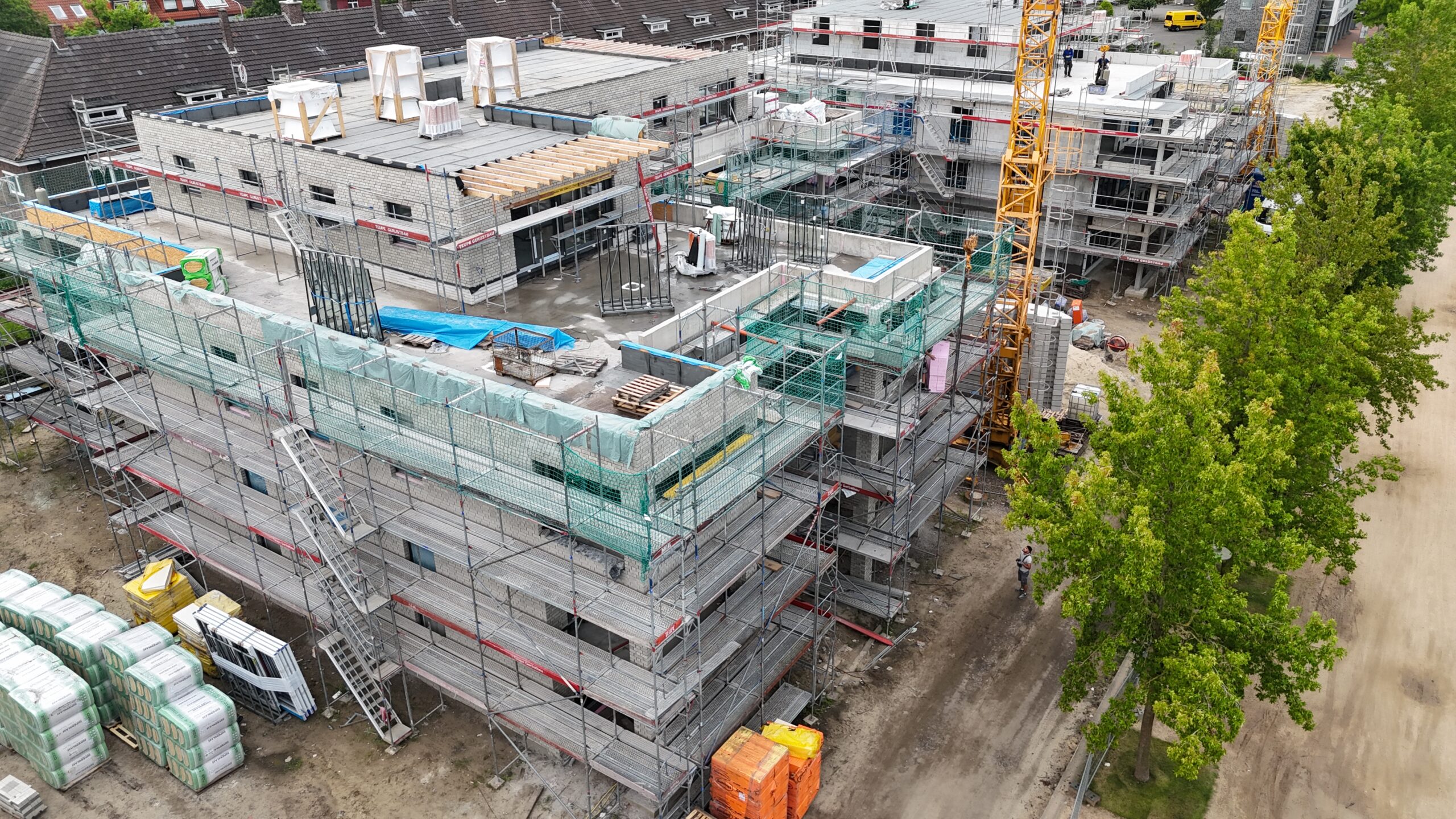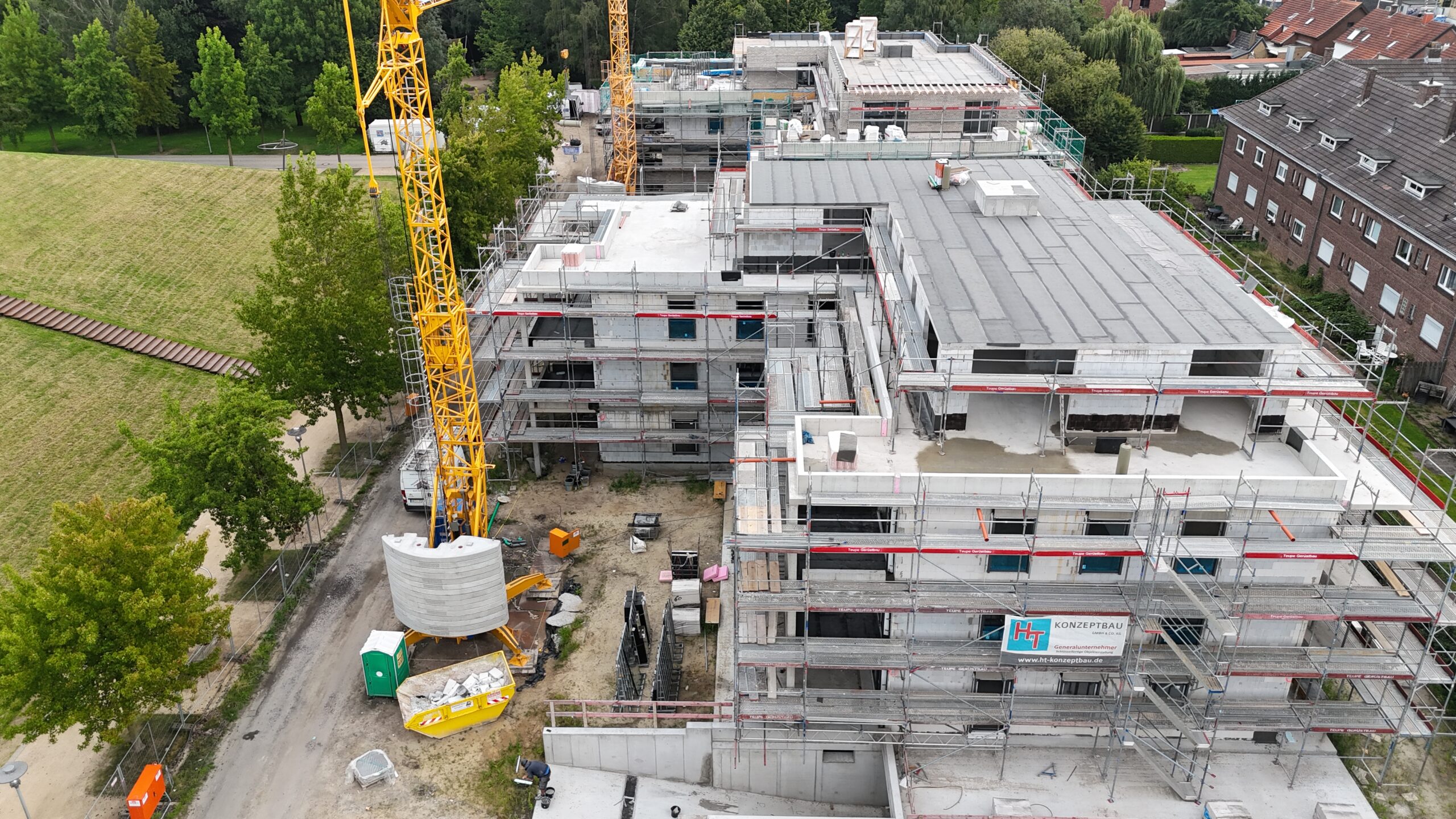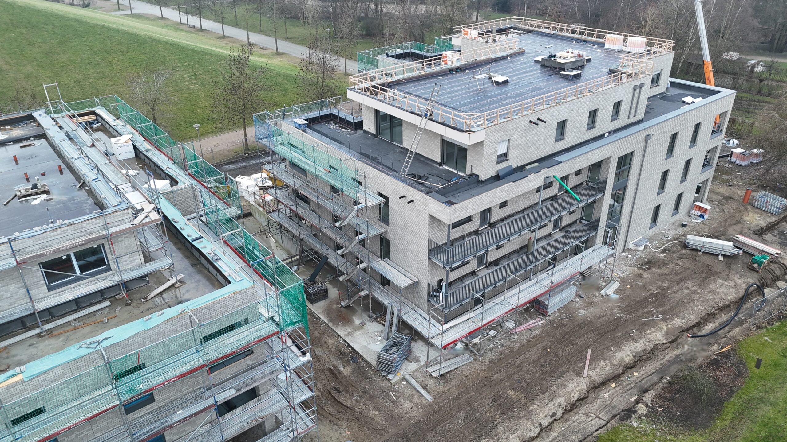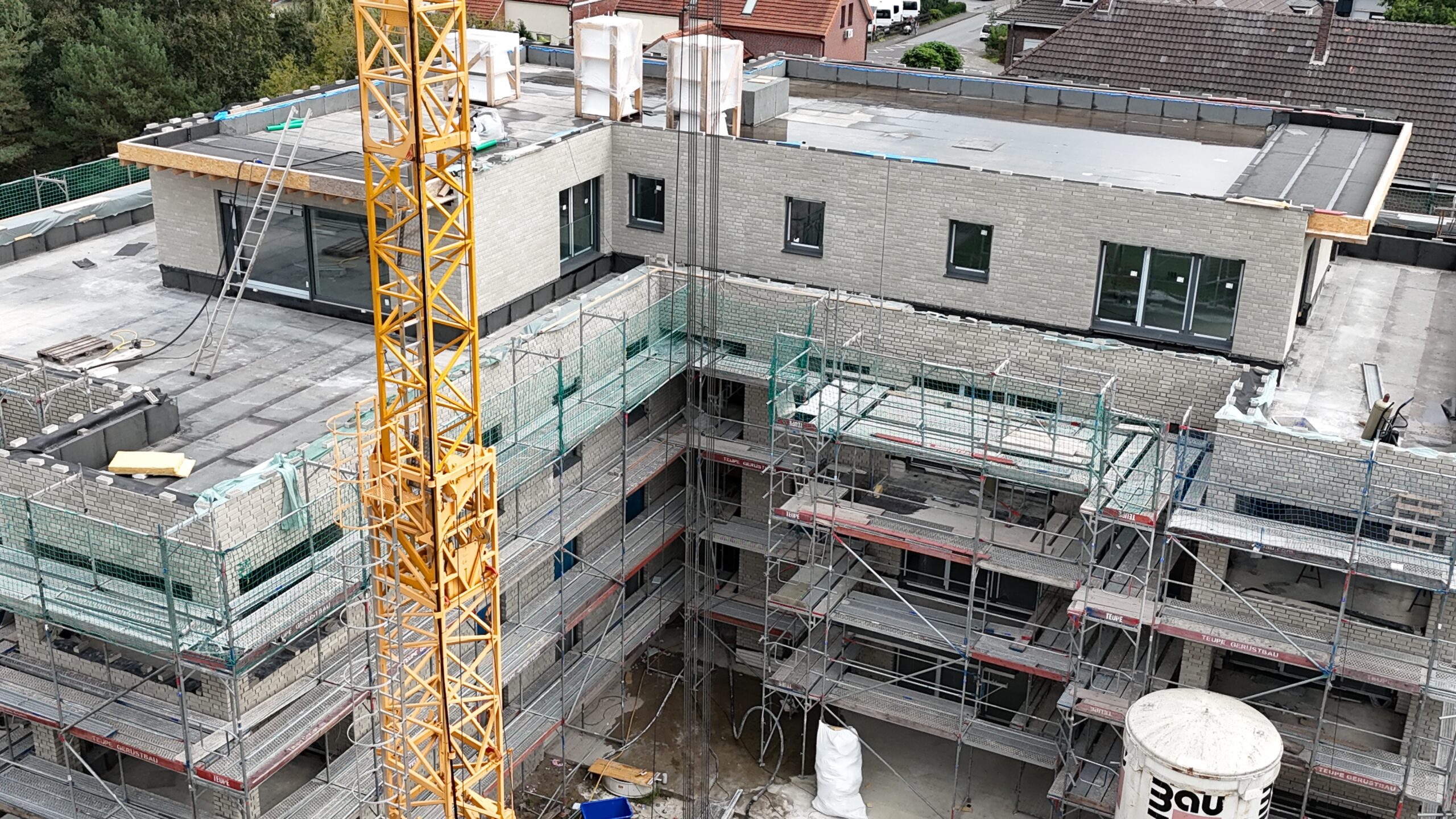 Die Erstellung der 34 Wohneinheiten erfolgt in massiver Bauweise incl. Aufzugsanlage und Tiefgarage.